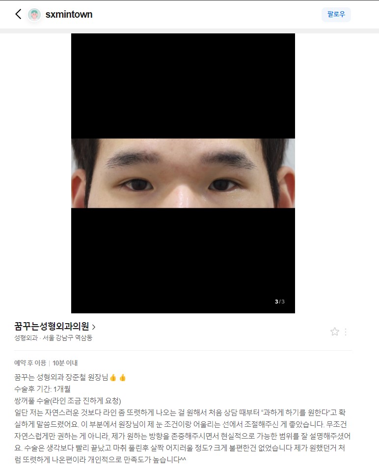비절개 쌍꺼풀, 눈썹하거상 수술 한달 차 후기